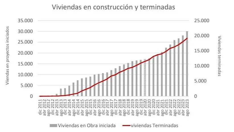 Las últimas cifras oficiales muestran que al cierre de agosto había casi 11.000 unidades en construcción, y un stock de algo más de 19.000 viviendas terminadas en todo el país, con destaque de Montevideo, Canelones y Maldonado.