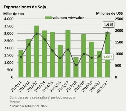 En la zafra que pasó se produjeron 3,2 millones de toneladas de soja, 60% más que en la zafra anterior. El rinde promedio fue de 2.790 kilos por hectárea, un 47% más que el año anterior.