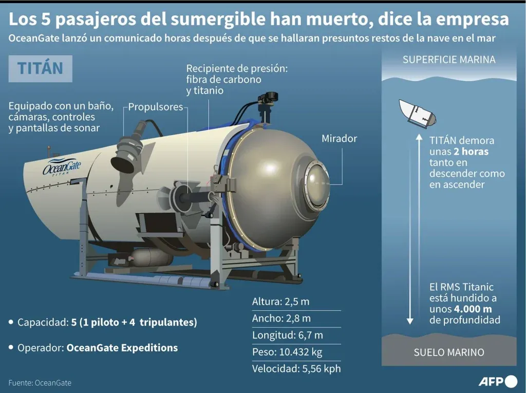 "Enseguida notificamos a las familias. En nombre de la Guardia Costera mis más profundas condolencias", dijo también el almirante, dando entonces por muertos a los cinco tripulantes, algo que minutos antes también había hecho la empresa propietaria del sumergible.