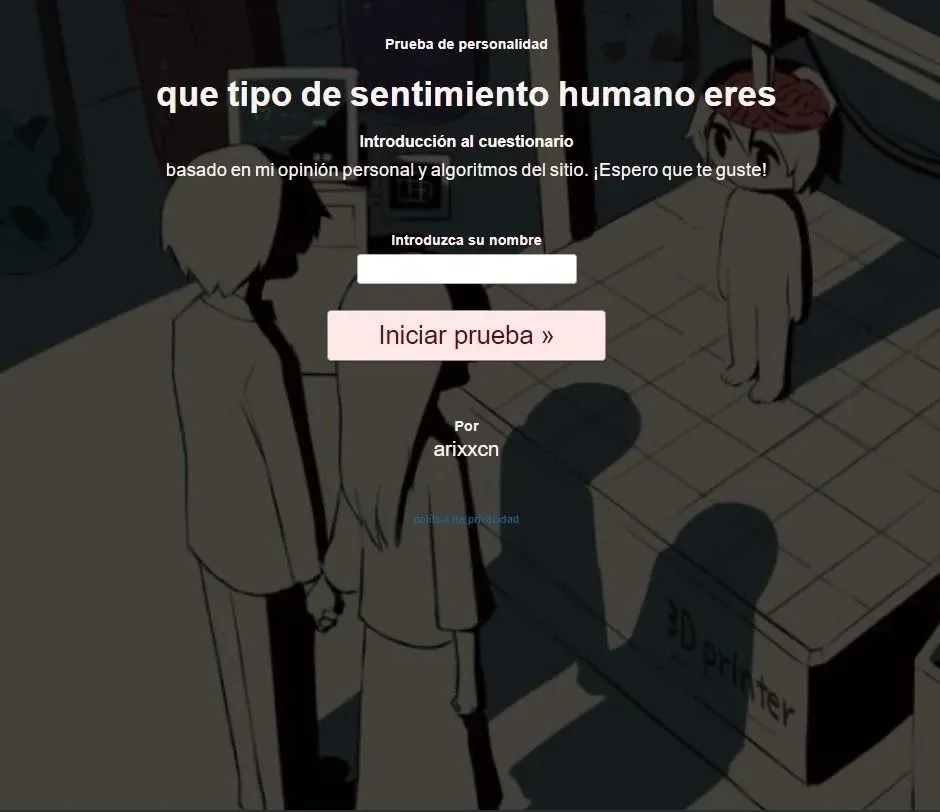 Uquiz Test qué sentimiento humano soy En cambio, el de "amor no corresponido" concluye: “porque estuviste al lado de una persona con quien no debiste estar y tal vez ahora lo sea. Por favor, recuerda que solo tú estás primero”.