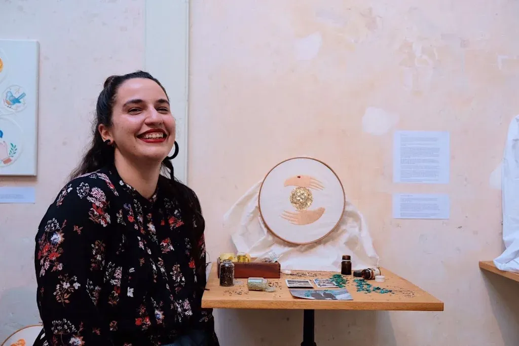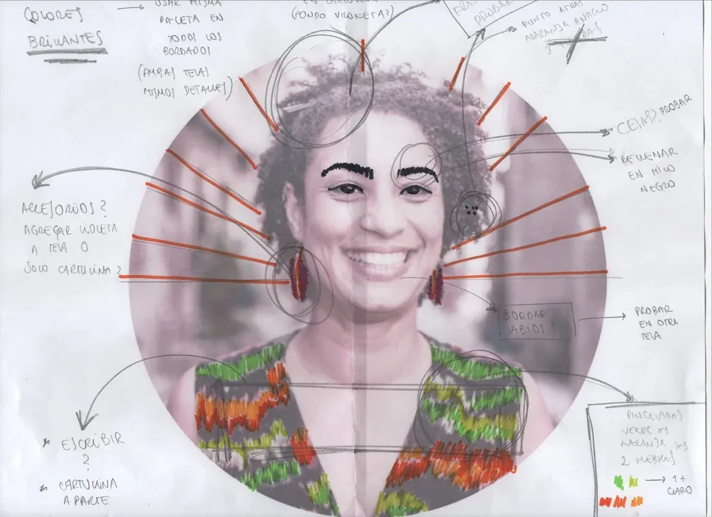 Romina Lapaz Guía de Lapaz antes de bordar el retrato de Marielle Franco “Estás llorando por las manos”
