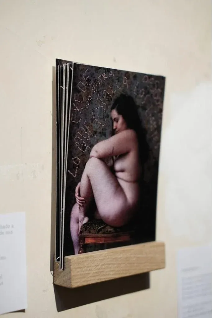 Su proyecto se llama Mujeres poesía, y así recuerda su creación: “Agarré distintas mujeres y bordé en papel postales con sus fotos y frases de ellas sobre lo que era la escritura y la poesía”, dice.
