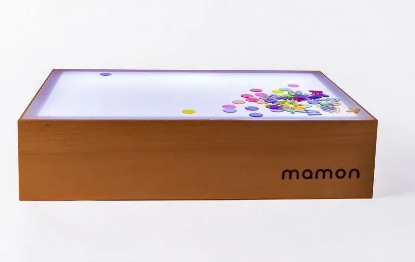 Es una caja cuya tapa traslúcida permite el pasaje de luz. Muchas veces se asocia este objeto al trabajo en fotografía, pero en este caso es una herramienta educativa y lúdica esencial para los niños pequeños que les ofrece multitud de posibilidades.