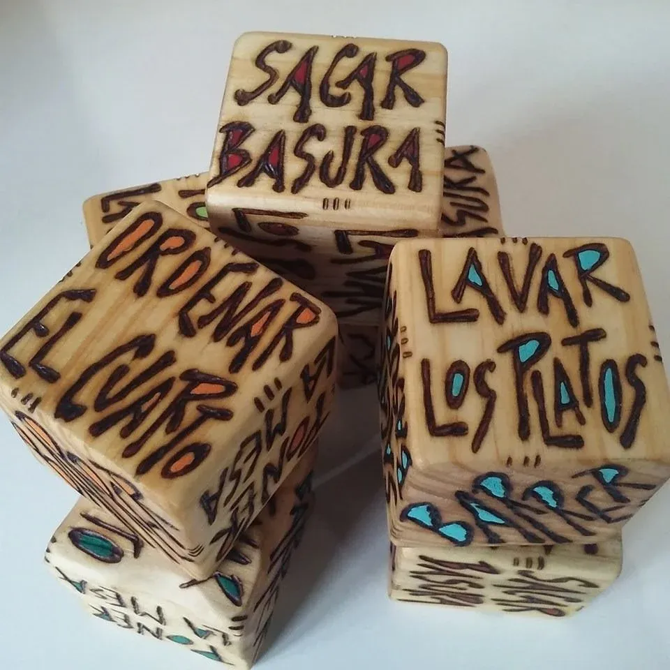 Es un juego de dados para toda la familia en el que cada cara propone diferentes tareas domésticas y actividades para colaborar en casa. La idea es que tanto los padres como los niños jueguen a ver qué les toca hacer en la divisón de roles.