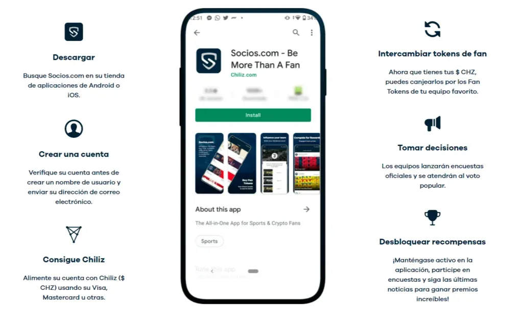 La forma en la que funciona es simplemente descargando la aplicación (Socios.com), crear una cuenta, alimentar la cuenta intercambiando Chiliz (una criptomoneda muy vinculada al fútbol), luego se puede intercambiar esos tokens por los de tu equipo favorito. Luego, los usuarios pueden tomar decisiones sobre su institución a partir de encuestas oficiales.
