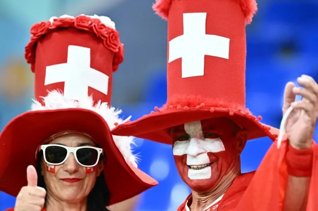 Hinchas suizos durante un partido del Mundial Qatar 2022