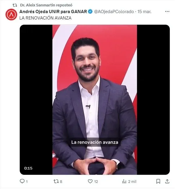 Luego, reivindicaría que él no se casa con las ideas sino con las personas y que si bien inicialmente trabajaba solo para candidatos de izquierda, ahora lo hace con cualquiera que le merezca respeto desde el punto de vista ético. Sanmartín está asesorando a Ojeda en comunicación política y desde mediados de febrero viene compartiendo en sus redes sociales noticias vinculadas al precandidato colorado.