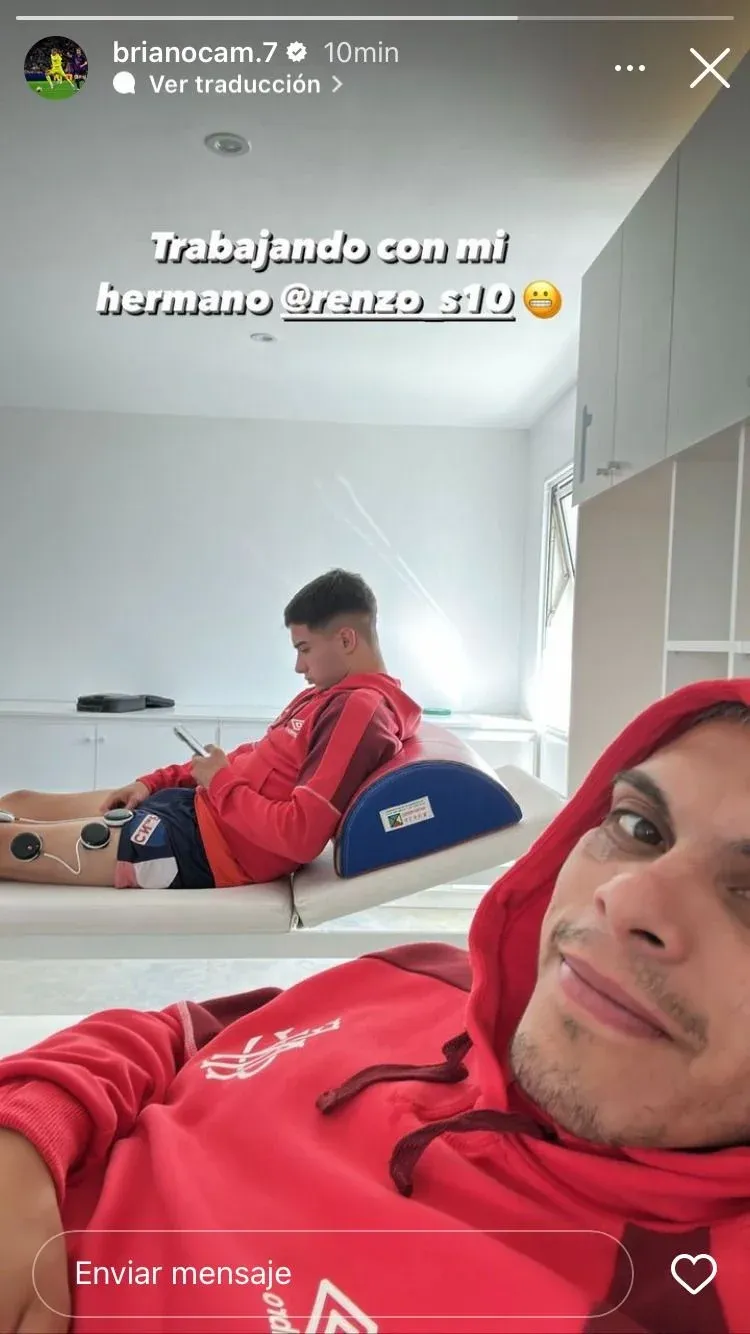 "Trabajando con mi hermano Renzo", escribió Ocampo. Ambos compartieron varios años en Nacional.