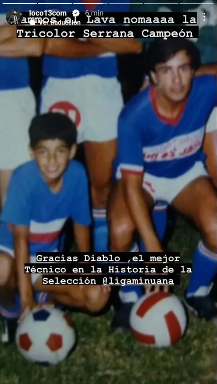 Además, el Loco compartió una foto de su infancia, donde aparece como mascotita en un partido de Lavalleja y junto a Gerardo “Diablo” Cano, el exjugador y hoy entrenador de Lavalleja que supo ser campeón del Interior en sus dos etapas.