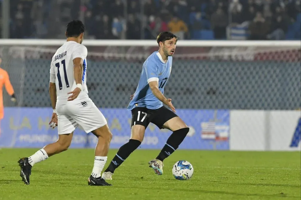 El defensa formado en Nacional, que debutó con Tabárez en 2019 como lateral izquierdo. Fue un inamovible en el plantel de Diego Alonso, también en esa misma posición en 2022. Sin embargo, este miércoles Bielsa, además de la cinta le dio otras tareas porque ya lo vio jugar como marcador de punta, así que eligió probarlo como zaguero por izquierdo.