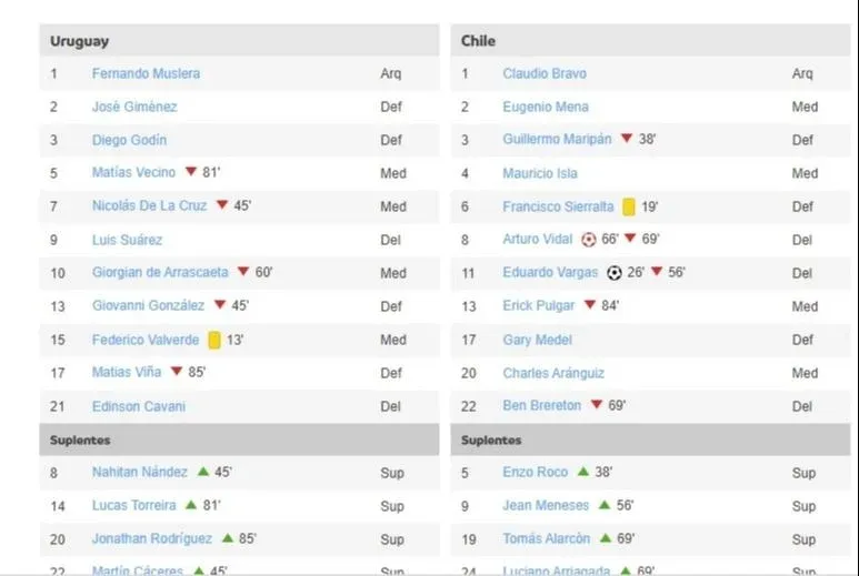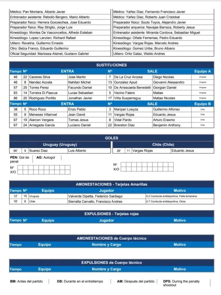 Formulario oficial del árbitro El Tweet oficial de la Copa América también le dio el gol a Suárez.