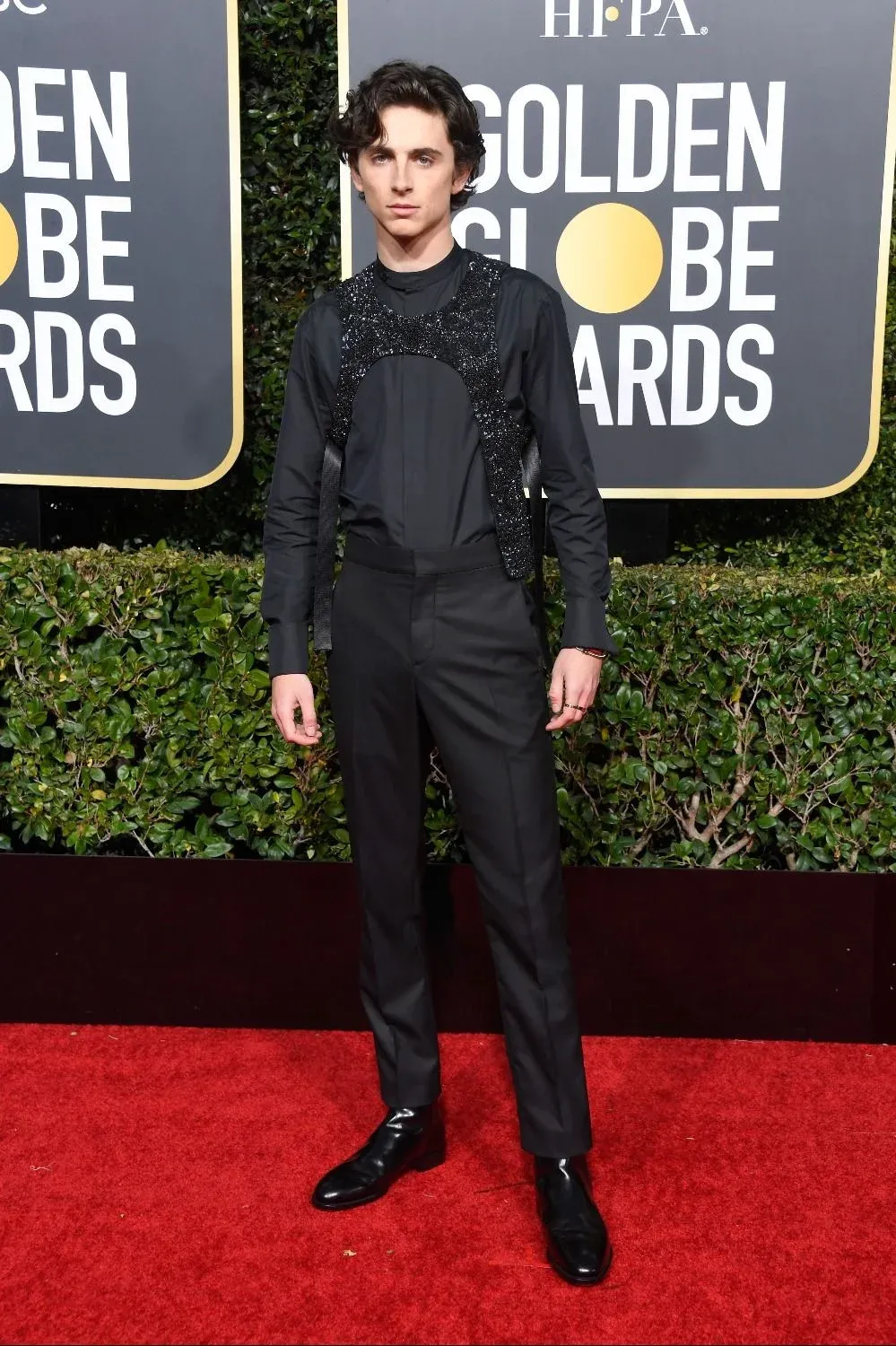 No tiene miedo de aparecer con un traje celeste de Alexander McQueen bordado con flores rojas, acompañado de zapatillas deportivas blancas. Tampoco le da miedo usar un conjunto negro con un arnés brillante que lleva la firma de Louis Vuitton; o un multicolor conjunto floral pintado a mano. No le da miedo posar para las cámaras de la revista ID con una chaqueta del diseñador belga Martin Margiela y una camisa de Saint Laurent negra y reluciente. No le da miedo porque hoy, 91 años después de la primera alfombra roja de los premios Oscar, los hombres no tienen por qué temerla a la moda.