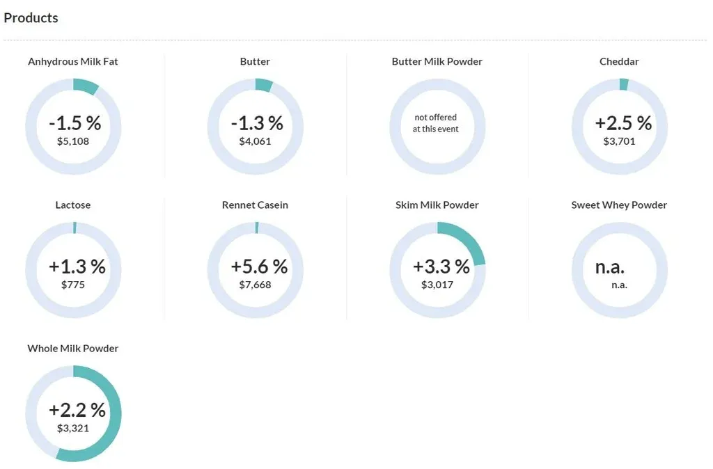 Esta suba en relación a la licitación anterior (desarrollada el martes 5 de noviembre) ubica al precio promedio de todos los lácteos negociados en US$ 3.481 por tonelada.