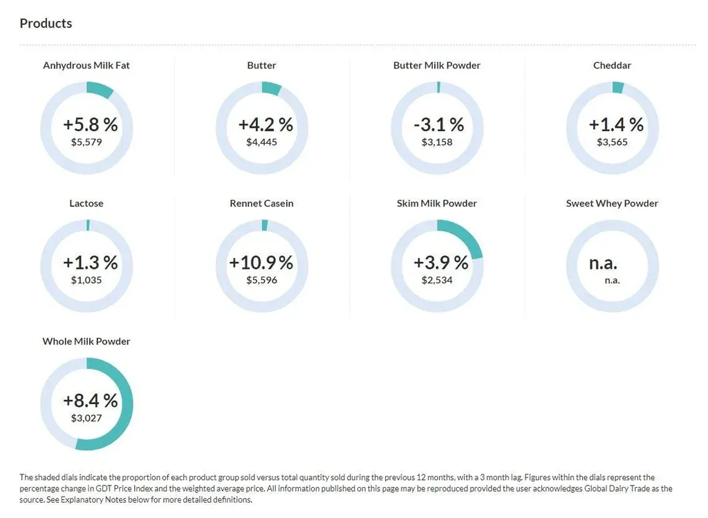 El índice global de precios de los productos lácteos subió por quinta vez en forma consecutiva, ahora un 6,7% en relación al evento anterior, en lo que fue la primer licitación de febrero, concretada en el marco de los negocios de este miércoles 6 el evento N° 229 de la plataforma Global Dairy Trade (Fonterra).
