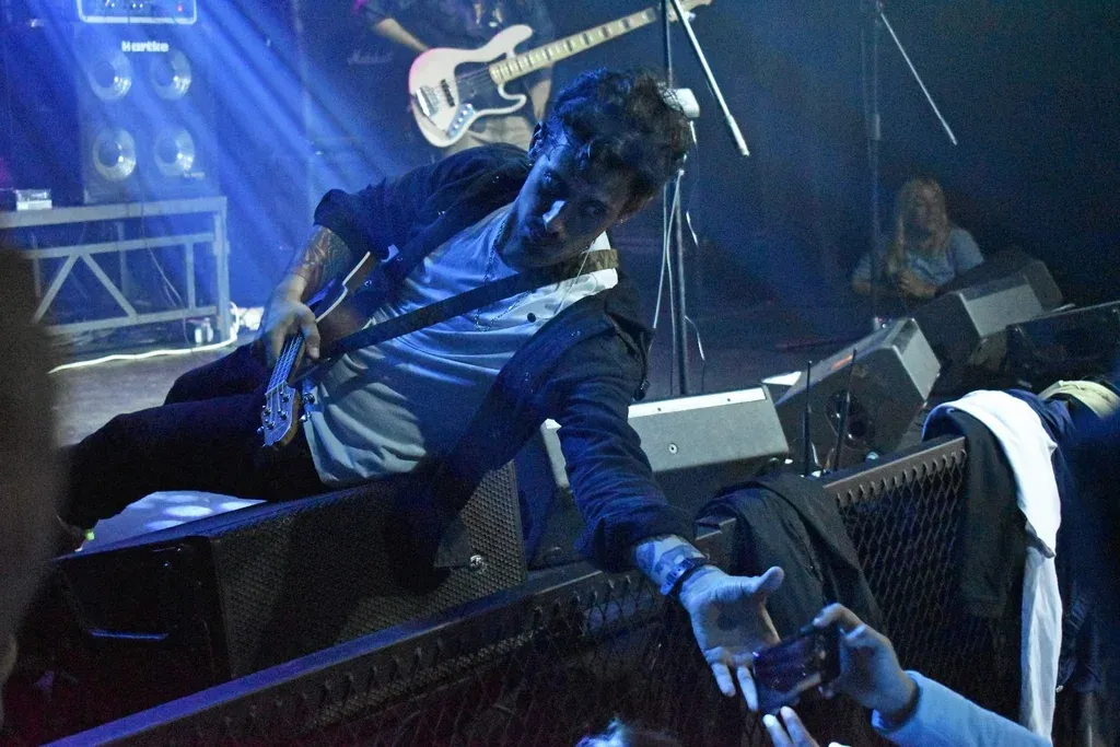 Estaba por finalizar su recital en el Montevideo Music Box y halagó una cartulina amarilla que tenía escrito su nombre y una frase de agradecimiento. Las dueñas del cartel querían una foto con él, pero no escuchaba lo que decían. Les pidió que se arrimaran al escenario, se agachó lo más que pudo y le pidió el celular a una de ellas; cuando se lo dieron cambió la cámara a foto frontal y se estiró un poco más para salir con ellas en la selfie.