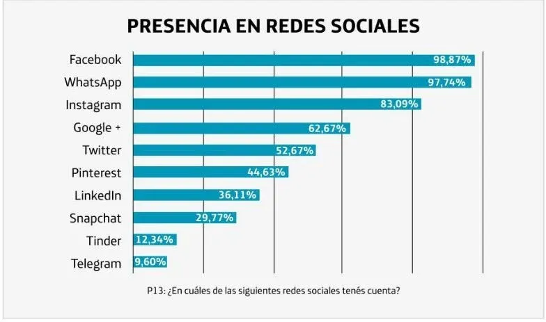 Es usual asociar a los millennials con las nuevas tecnologías; frecuentemente se los imagina con un celular constantemente en la mano. Esta idea que se tiene de ellos no podría ser más acertada, según la investigación que se presentó el jueves 6. Casi todos hacen uso de las redes sociales. Un 99% de los uruguayos de esta edad usan Facebook, seguida de WhatsaPp (98%) e Instagram (83%). Con el desembarco masivo de sus padres y abuelos a Facebook, comenzaron a usar Instagram con más frecuencia.