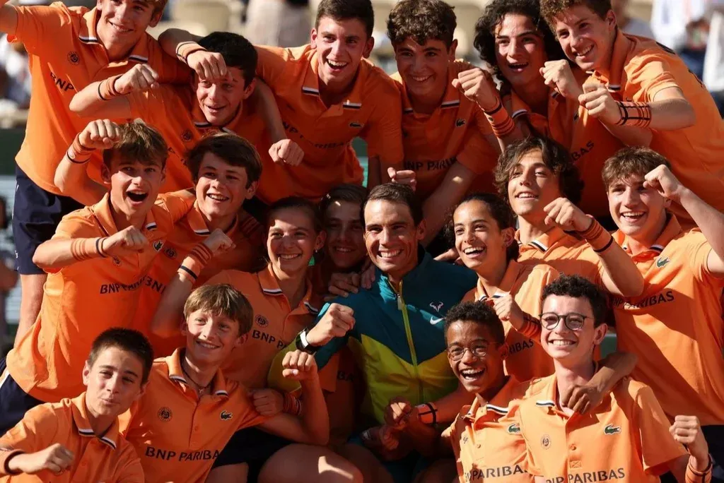 Rafael Nadal con los ballboys celebra su nuevo título en Roland Garros