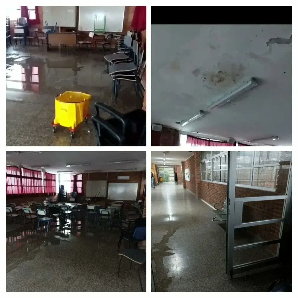 Además, en tres salones del liceo hay baldes para recoger el agua de las goteras. Se encontraron “rastros de humedad en varios sectores del techo, inclusive donde se encuentra la instalación eléctrica” y otras goteras en pasillos y áreas de estudio.