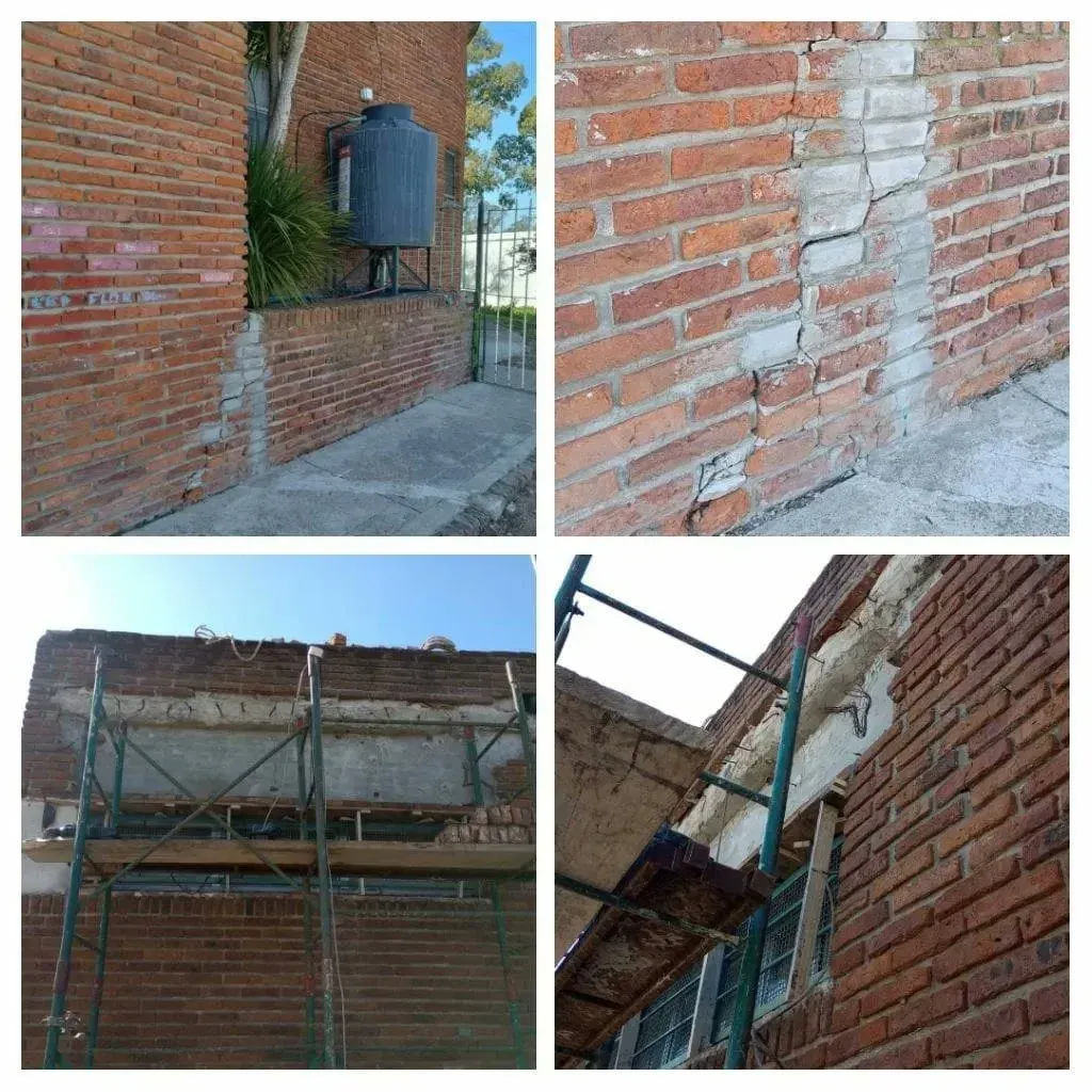 En el patio de recreo, el inspector encontró “restos de ladrillos caídos de la pared”.
