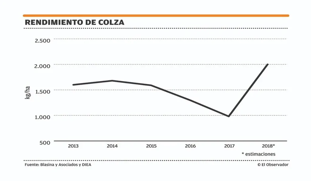 Para todos los cultivos de invierno ha sido hasta ahora una primavera muy favorable. Cuando la semana que viene ingresen las cosechadoras, posiblemente los rendimientos en colza sean de 2.000 y 2.300 kilos por hectárea, por encima de los 1.430 promedio de los últimos cinco años y de los 981 kilos de la zafra pasada. La fuerte expansión de la superficie podría dar lugar a un récord de producción cercano a 140.000 toneladas. Es un cultivo difícil, que los agricultores uruguayos han aprendido a hacer.