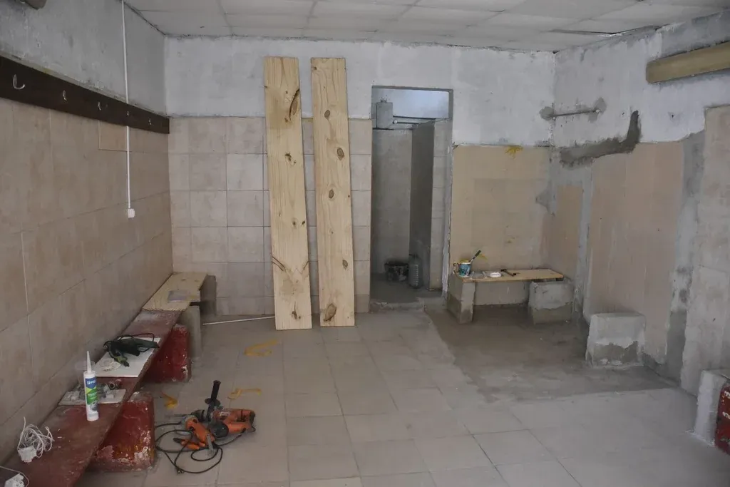 Los gauchos fueron un poco más allá de lo solicitado y están en plena obra de acondicionamiento del vestuario visitante.