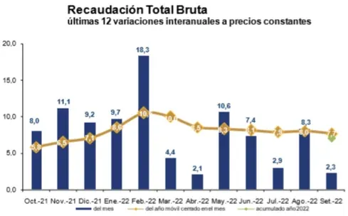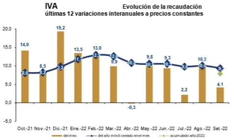 La recaudación de IVA , el principal impuesto (48% del total), alcanzó los $ 23.742 millones y tuvo una suba de 4,1% real respecto a igual mes del año pasado y de 7,9% en el acumulado enero-setiembre.