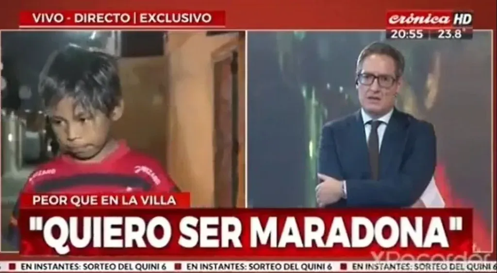 El periodista le pregunta como quién quisiera ser y el niño responde: “Como Maradona”.
