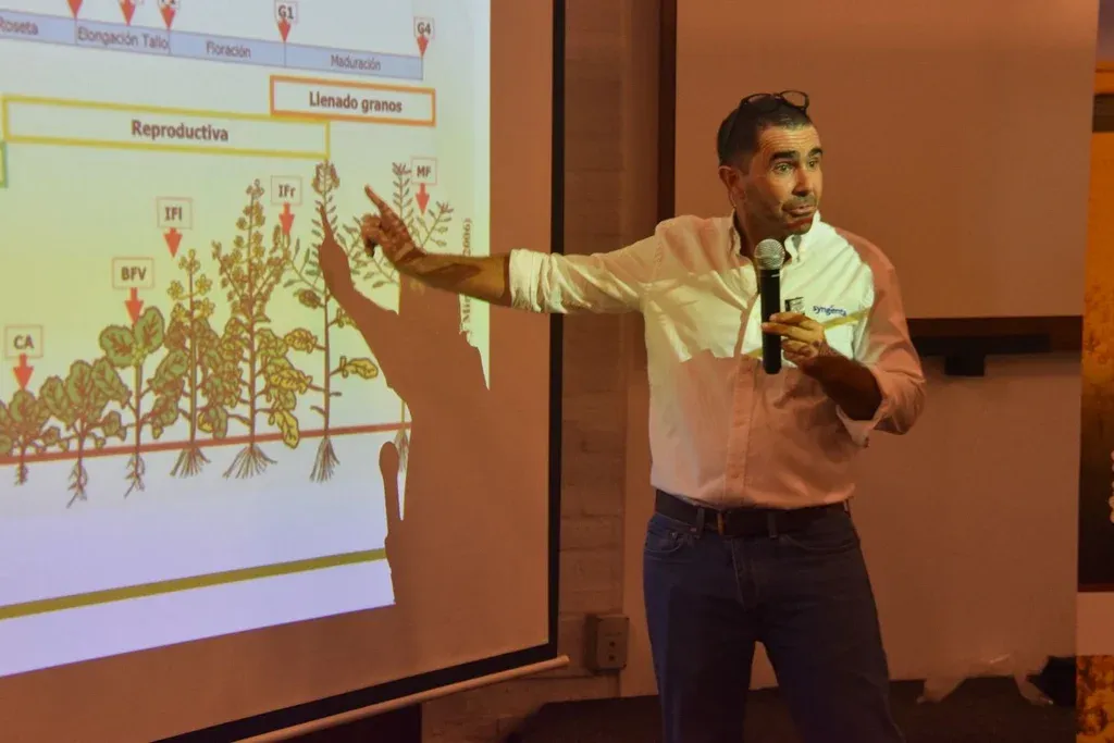 Es un balance muy bueno. Primero porque es una actividad tradicional que se viene haciendo año tras año y con mucho éxito. Pero lo importante son los contenidos, poner sobre la mesa temas de interés y de actualidad de la agricultura y presentar los aportes de la empresa Syngenta a nivel de protección de cultivos. Este año contamos con Sebastián Mazzilli del Instituto Nacional de Investigación Agropecuaria (INIA) para hablar de manejo de colza, y con Lucrecia Couretot, fitopatóloga del Instituto Nacional de Tecnología Agropecuaria (INTA) Pergamino, para hablar de enfermedades en trigo y cebada, dos expositores de primer nivel. Finalmente, para redondear el balance de esta jornada, el público acompañó en muy buen número, más de 100 productores y técnicos se hicieron presentes en esta actividad.