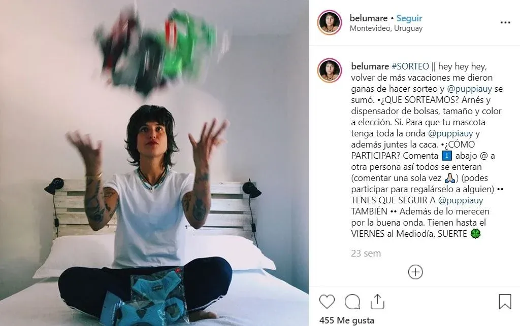 La comunicadora tiene 16.000 seguidores en Instagram y ha trabajado con marcas como Puppia Uy (indumentaria para perros), Lucky Star Tatuajes, Yves Saint Laurent y Mercado Libre.