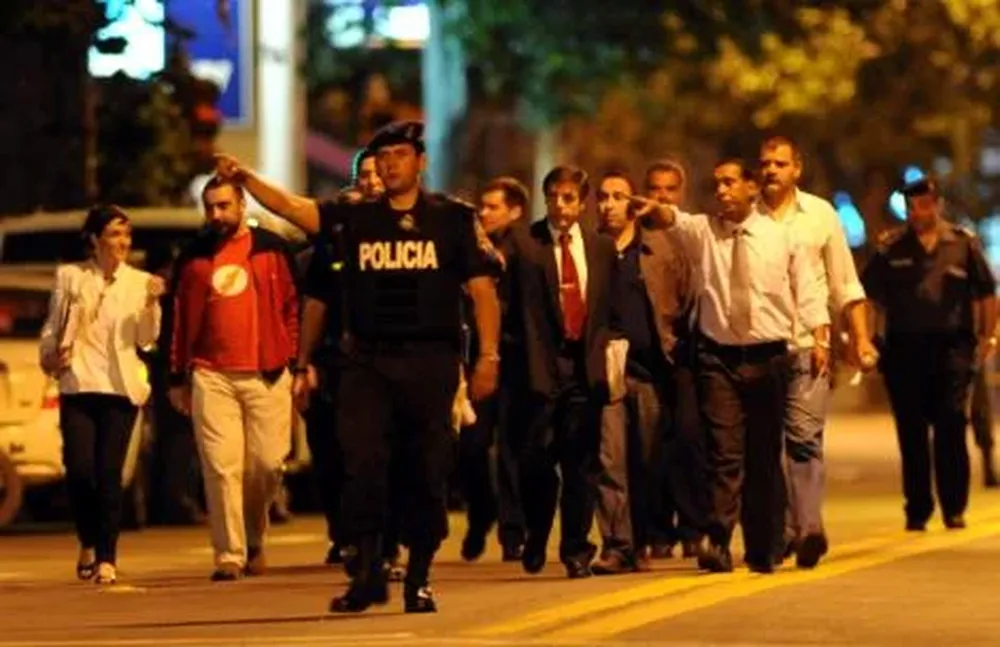 La cantidad de efectivos y móviles y la extensión del vallado fueron creciendo con el correr de las horas. No se pudo ver cuando los dos procesados descendieron en el lugar de los hechos, pero sí se vio ingresar un auto de cuatro puertas blanco en el que fueron trasladados.