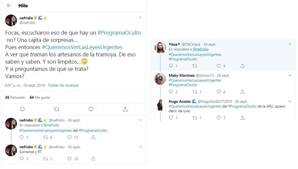 Otras cuentas que postean constantemente contenidos vinculados a la campaña electoral y que incluso se convocan entre ellos para promover temas o debates son @lolilalesca, @axulon , @alftuitea, @nefridio, @OkCiriaca @lombarditozurdo @anahinietodf.