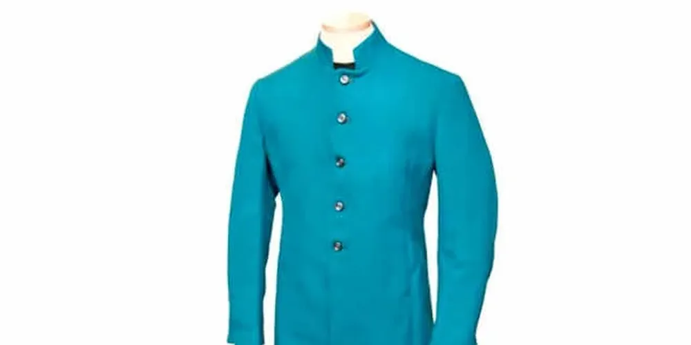 De color azul verdoso, la chaqueta sigue el estilo de las utilizadas en la portada del octavo álbum del mítico grupo, Sgt. Pepper’s Lonely Hearts Club Band (1967), con cuello mandarín y una ligera campana en las mangas.