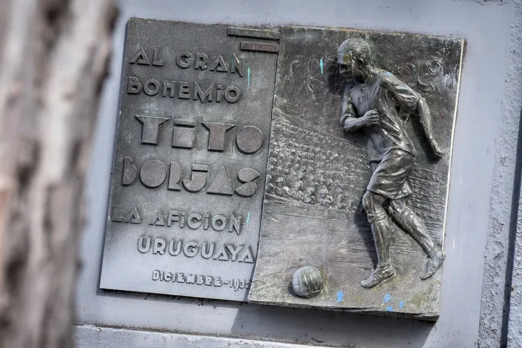 La misma dice “Al gran Tito Borjas, la afición Uruguaya. Diciembre de 1932” y aparece en relieve la figura del gran delantero quien falleció cuatro días antes de cumplir sus 34 años.