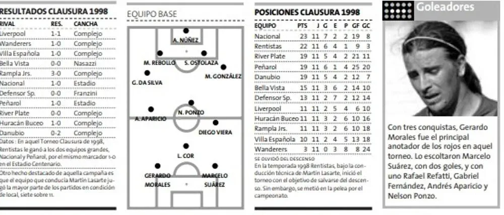 El sueño comenzó con una obligación. Salvarse del descenso era la única realidad. Pensar en otra cosa era una opción arriesgada que nadie estaba dispuesto a asumir. Así las cosas, el Rentistas de Martín Lasarte salió al Clausura de 1998 con las prioridades debidamente claras.