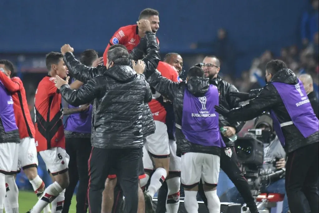 El festejo de Atlético Goianiense tras el gol de Luiz Fernando