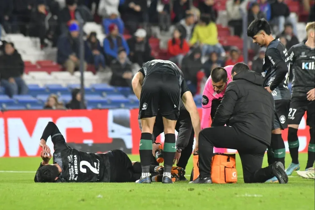A los 58, en una jugada casual Heredia intentó impedir un remate del Pumita Rodríguez y se lesionó el tobillo.