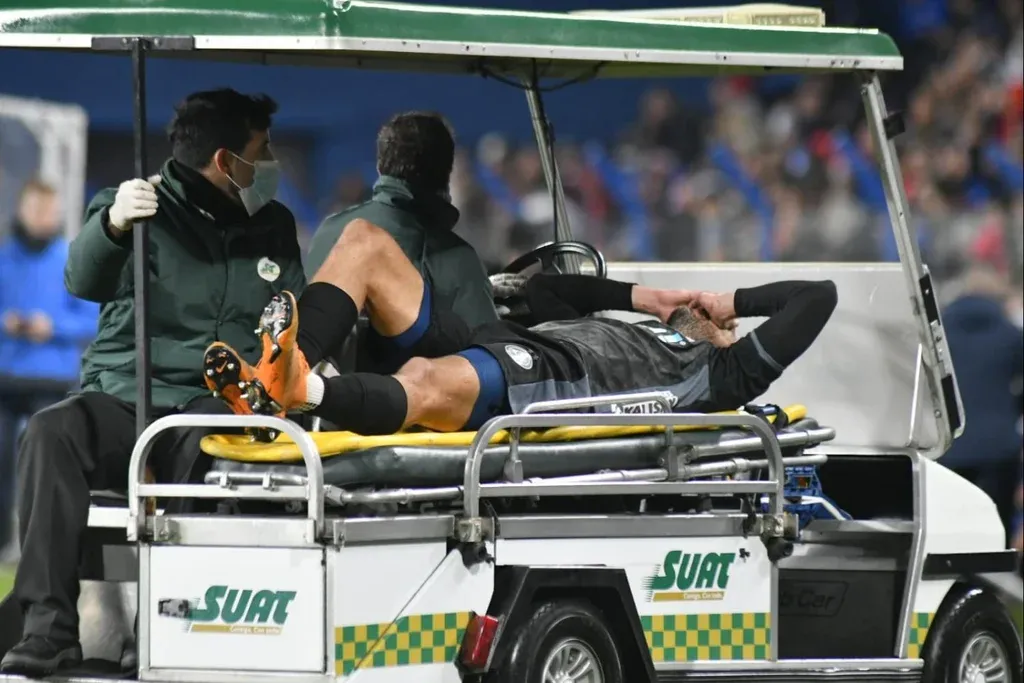 Desde la camilla lo llevaron a realizarse estudios: sufrió rotura de ligamento lateral en el tobillo izquierdo