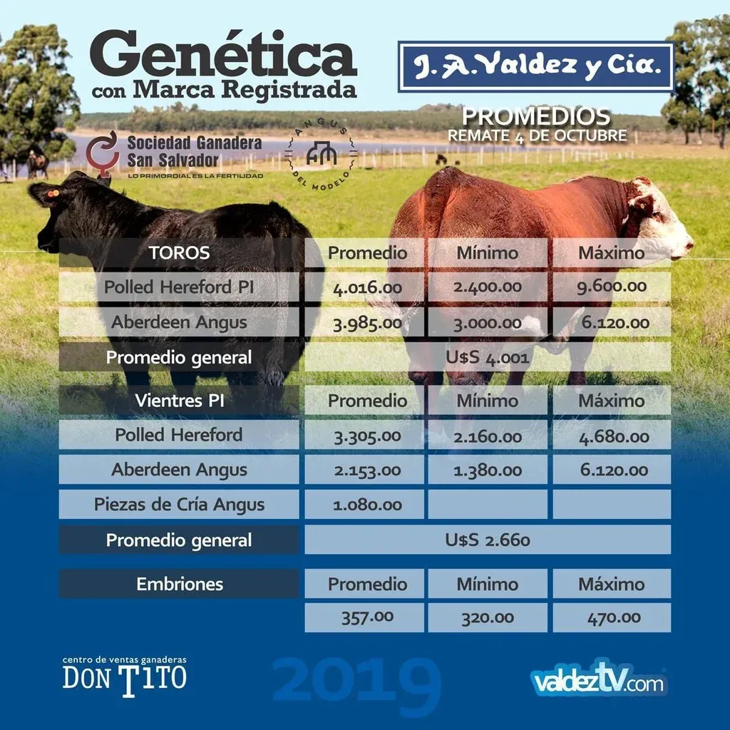 Reproductores de Genética con Marca Registrada promediaron US$ 4.001