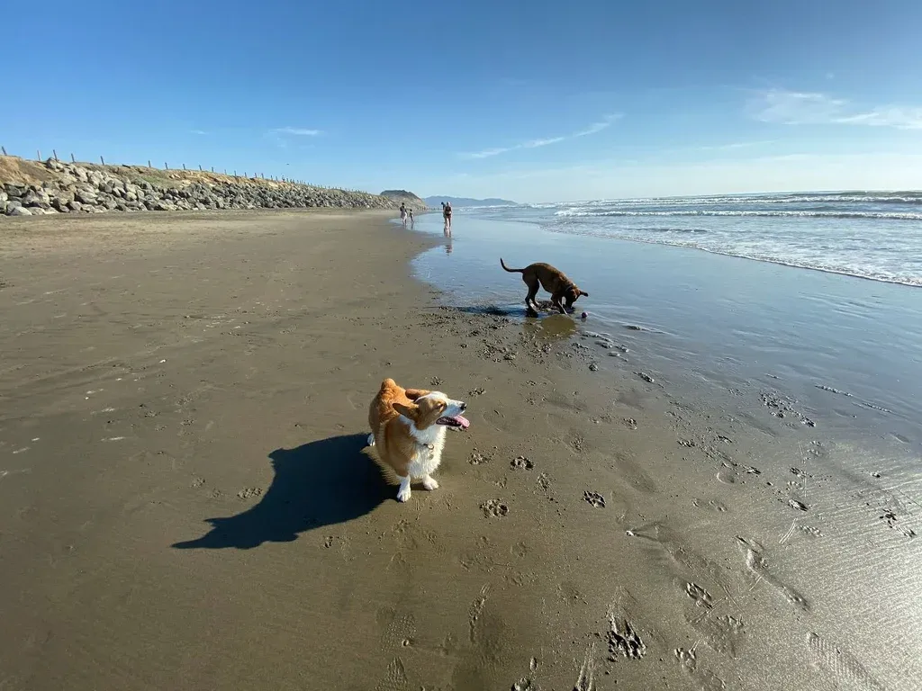 La nueva función más destacable de los iPhone 11 es la lente ultra gran angular. Usar el modo ultra gran angular es sencillo y eficiente: con los dedos alejas la imagen totalmente para iniciarlo. En un playa, la vista más amplia capturó a mis perros mientras jugaban en la arena, las olas del océano y la autopista adyacente.