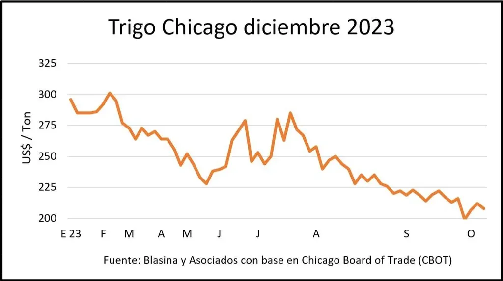 El trigo en el mercado de Chicago perdió el viernes parte de lo que había recuperado durante la semana y cerró a US$ 208 por tonelada en la posición diciembre, US$ 10 por encima del viernes anterior, una ganancia de 5%.