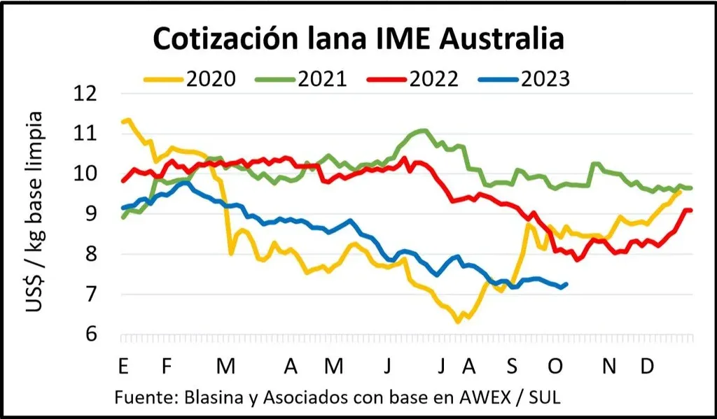En Uruguay, entre enero y setiembre se exportaron 20,8 millones de kilos de lana por un monto de US$ 100,6 millones. El volumen bajó 14% respecto a 2022 mientras que los ingresos cayeron 24%.