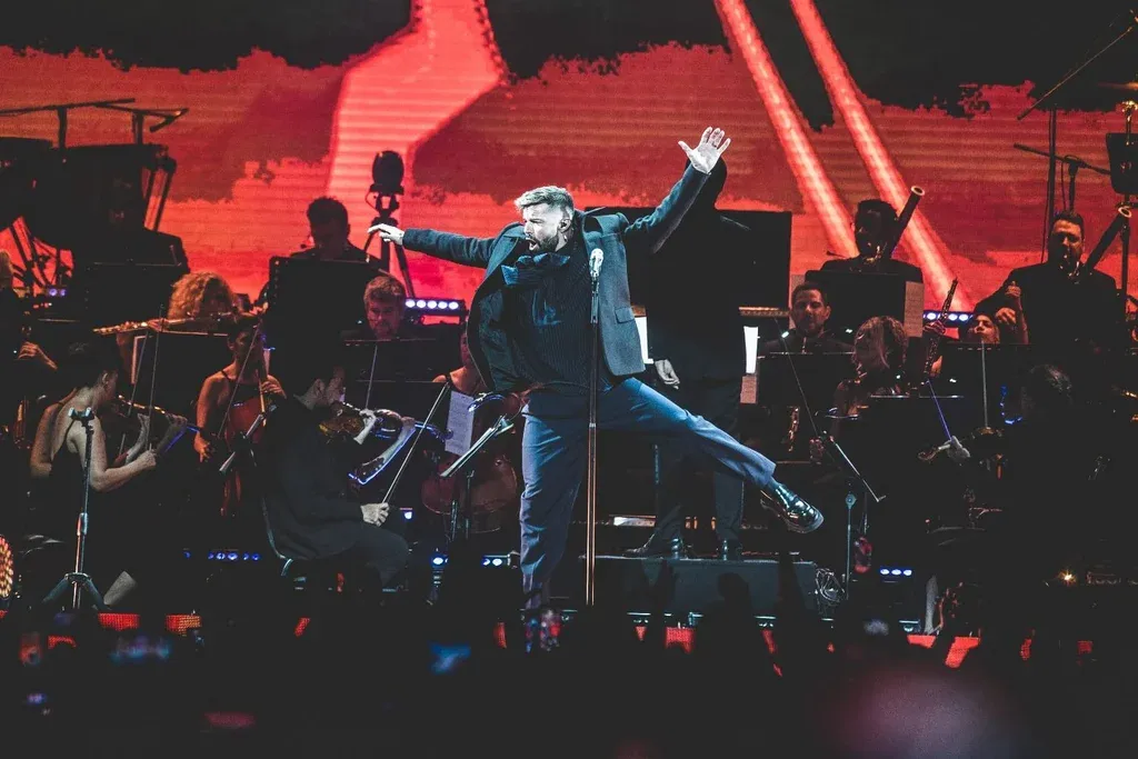 Cuando Ricky Martin entra en silencio al escenario del Antel Arena, el público estalla en un griterío que, a lo lejos, parece el chillido de las vuvuzelas. No importa que en ese preciso instante esté sonando la orquesta que lo acompaña y que la música sinfónica lleve implícita la solemnidad y la pose del Clasicismo. Cuando Ricky Martin pronuncia la primera palabra de la noche—“Pégate”, como el nombre de la canción con la que inicia su show—, las fans se entregan en aplausos. Cuando Ricky Martin seca su transpiración con una toalla negra que luego revolea como un poncho y tira a la platea, las groupies se pelean por quedarse con ese preciado trofeo. Cuando Ricky Martin canta El amor de mi vida, el auditorio enciende las linternas de los celulares como en las viejas baladas se prendían los encendedores. Cuando Ricky Martin imita el paso básico de la salsa, aúllan. Cuando Ricky Martin menea, claman. Es un ejercicio de acción-reacción.