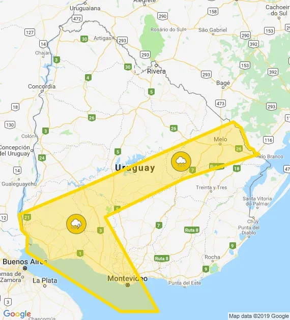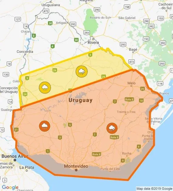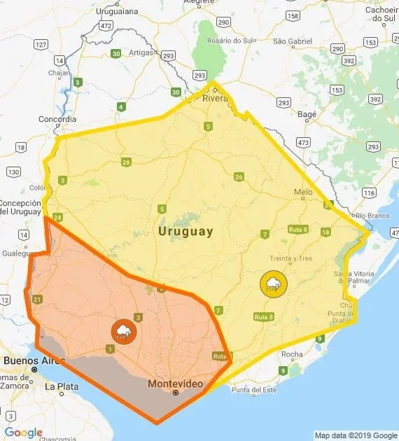 Inumet Además, rige una alerta amarilla para las siguientes zonas: