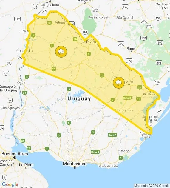 El Instituto Uruguayo de Meteorología (Inumet) actualizó la alerta amarilla por persistencia de tormentas y lluvias. El llamado de atención rige hasta la hora 9, cuando habrá una actualización.