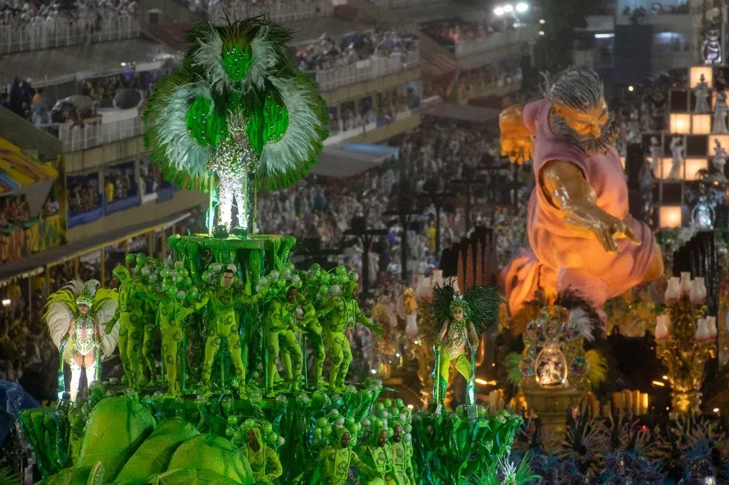 Salgueiro evocó la figura tutelar de Xangô -rey de la justicia en religiones de matriz africana- y cerró su desfile desplegando banderas arco iris, símbolo de la tolerancia a la comunidad LGBT.