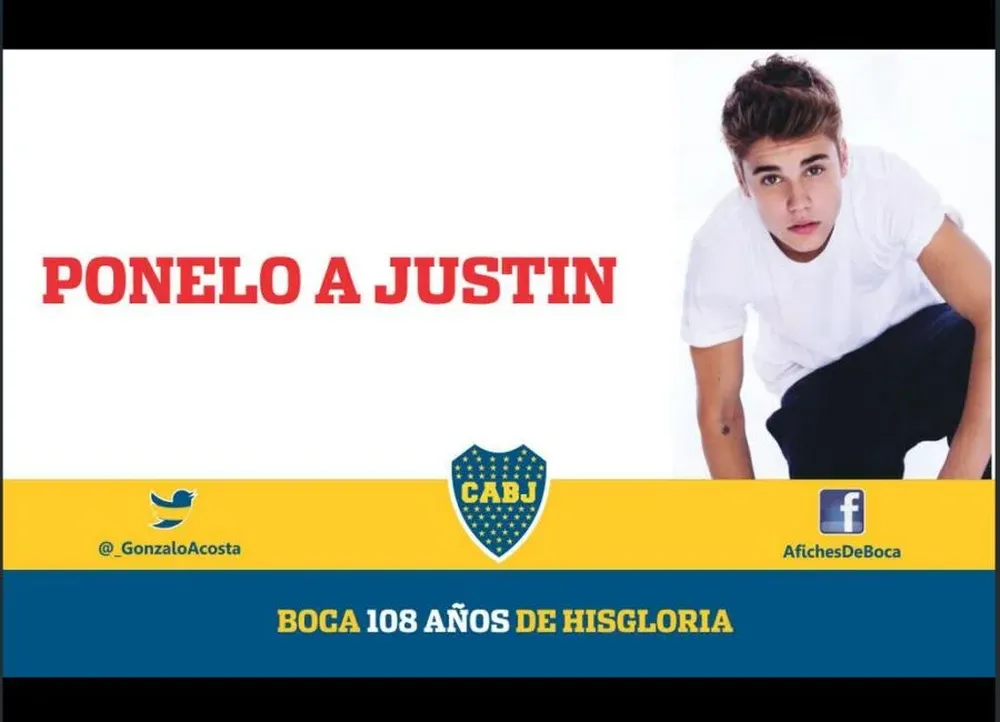 Con varios afiches que circularon en la web, los xeneizes se burlaron de los hinchas de River. El DT Ramón Díaz fue uno de los elegidos para las bromas, como también Justin Bieber, quien dará un concierto en el estadio Monumental