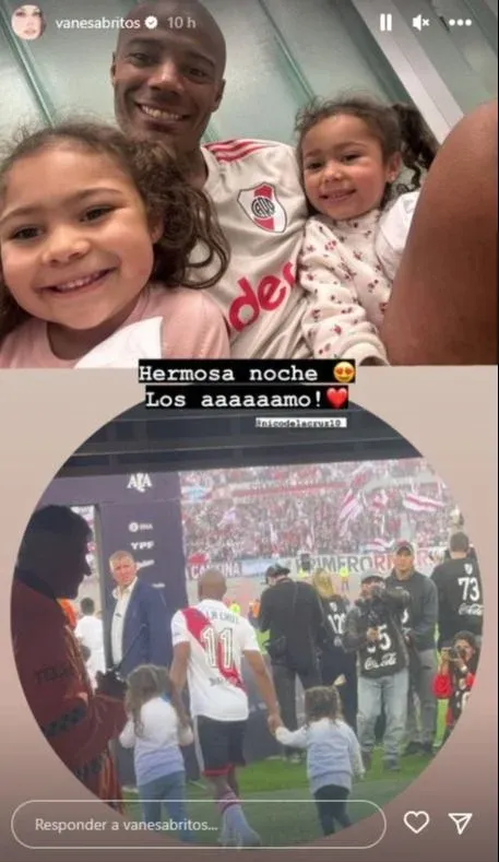 Además, tras el partido, subió otra foto con De la Cruz y sus niñas. “Hermosa noche, los amo”, escribió.