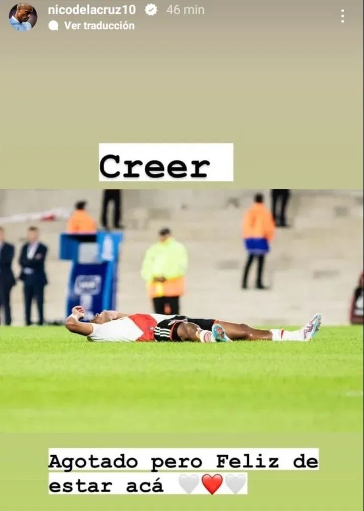 “Creer”, escribió. “Agotado pero feliz de estar acá”, señaló De la Cruz.