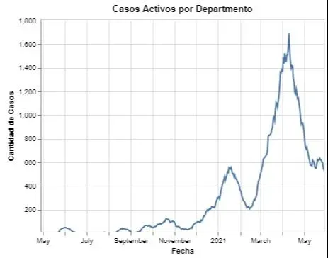 Los contagios, las muertes y los casos activos de covid-19 vienen descendiendo semana a semana en el departamento fronterizo y mientras que en la semana del 17 a 23 de mayo hubo un total de 423 casos, la semana siguiente la cifra bajó a 282. Las muertes también bajaron de 11 fallecidos a cuatro de una semana a la otra.