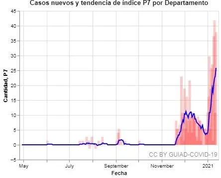 Rocha entró este martes en zona roja según el índice P7 de Harvard, al registrar 25,84 contagios de covid-19 cada 100 mil habitantes en los últimos siete días. Las autoridades sanitarias locales están analizando cada uno de los 175 casos activos para una reunión este jueves a las 9 de la mañana, cuando se evaluarán los pasos a seguir, según informó a El Observador el titular del Centro Coordinador de Emergencias Departamental, Daniel Silveira.